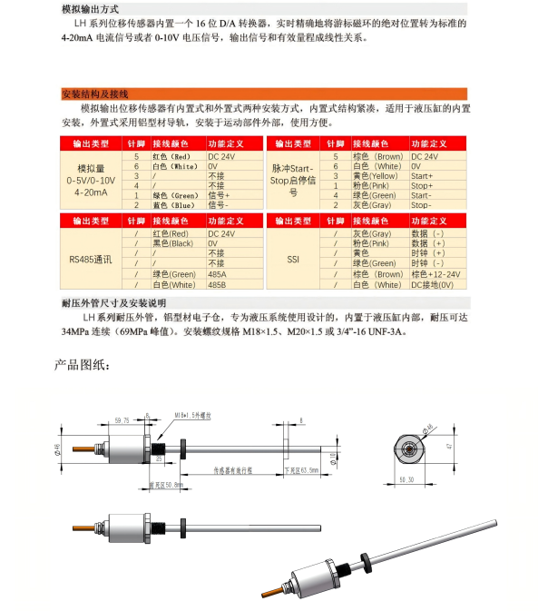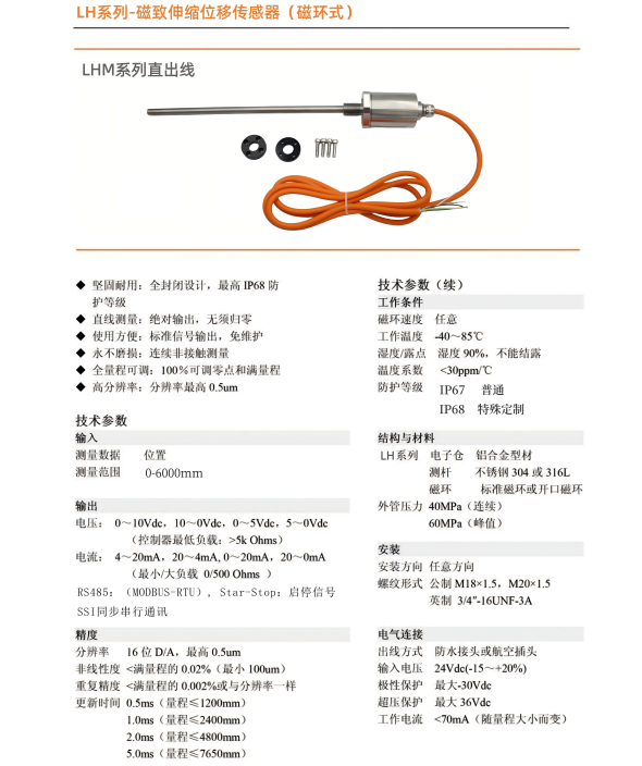 LHM磁致伸縮位移傳感器 油缸位移傳感器液壓油缸行程傳感器經(jīng)濟(jì)型