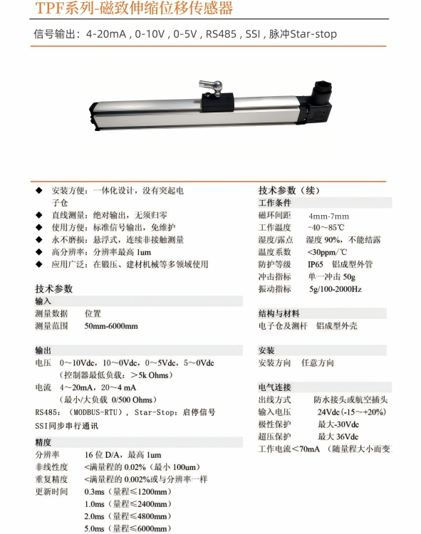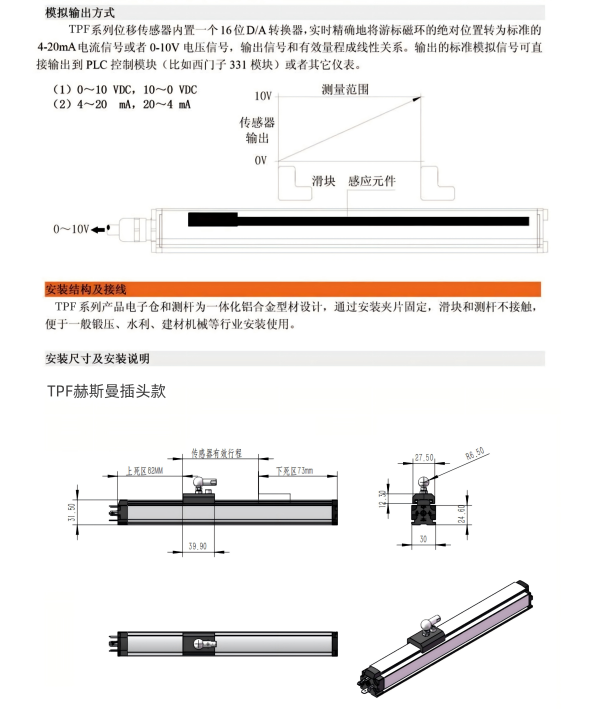 油缸外置位移傳感器TPF滑塊式磁致伸縮位移傳感器注塑機(jī)傳感器