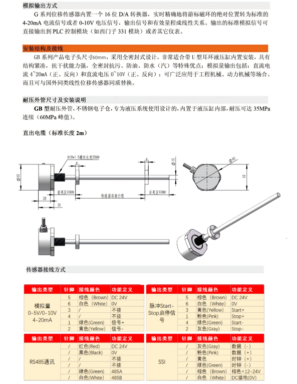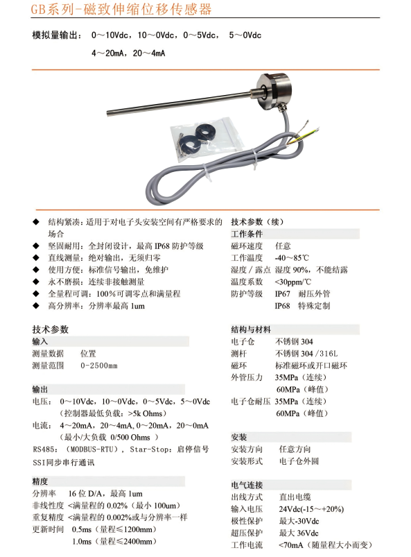 GBT磁致伸縮位移傳感器油缸內(nèi)置位移傳感器液壓油缸行程傳感器