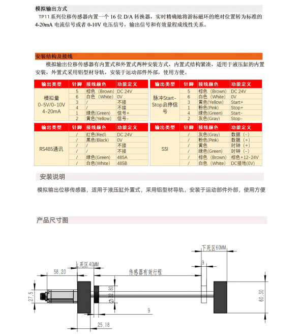 TP11磁致伸縮位移傳感器磁環(huán)式直線位移傳感器外置行程位移傳感器